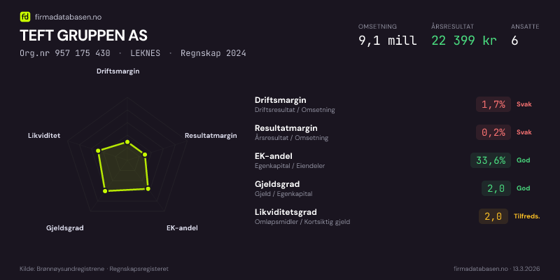 TEFT GRUPPEN AS,LEKNES — jo større areal, jo sterkere økonomi.Org.nr 957 175 430 · Regnskap2024