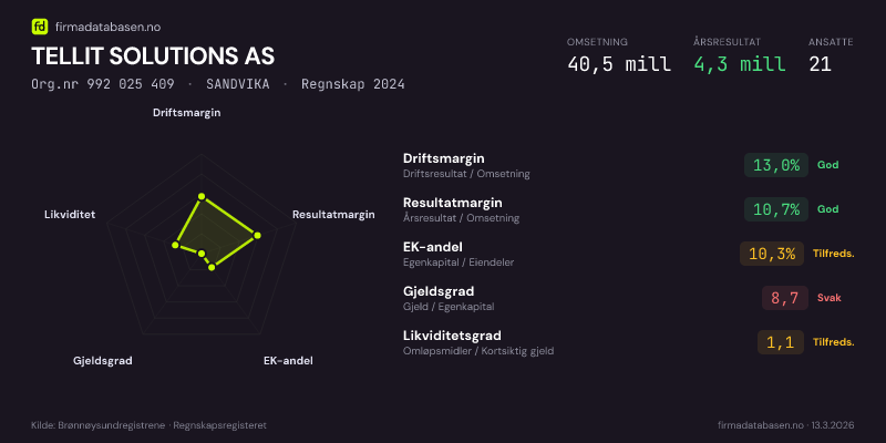 TELLIT SOLUTIONS AS,SANDVIKA — jo større areal, jo sterkere økonomi.Org.nr 992 025 409 · Regnskap2024
