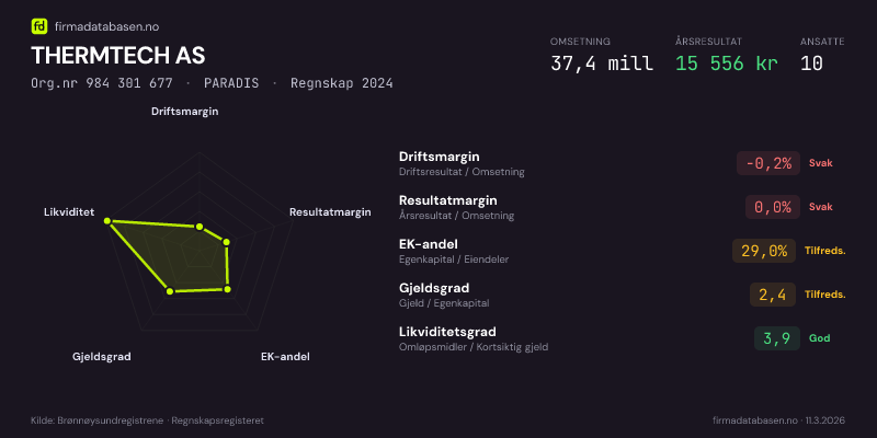 THERMTECH AS,PARADIS — jo større areal, jo sterkere økonomi.Org.nr 984 301 677 · Regnskap2024