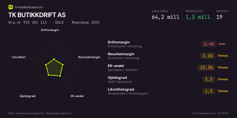 TK BUTIKKDRIFT AS,OSLO — jo større areal, jo sterkere økonomi.Org.nr 932 104 113 · Regnskap2024