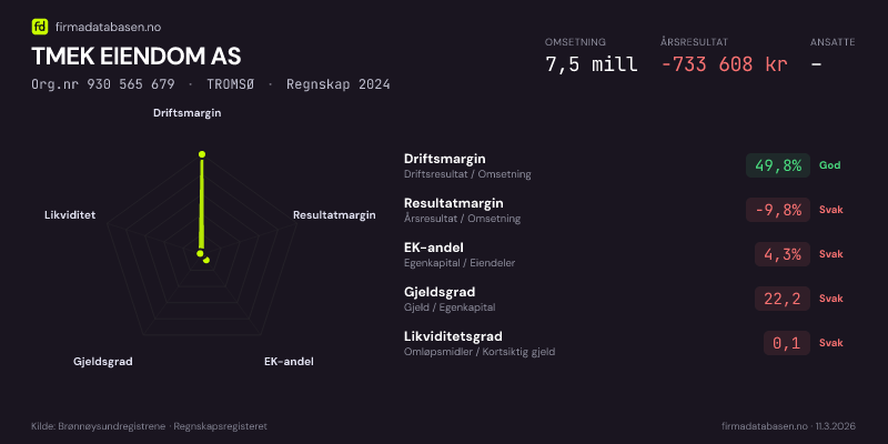 TMEK EIENDOM AS,TROMSØ — jo større areal, jo sterkere økonomi.Org.nr 930 565 679 · Regnskap2024
