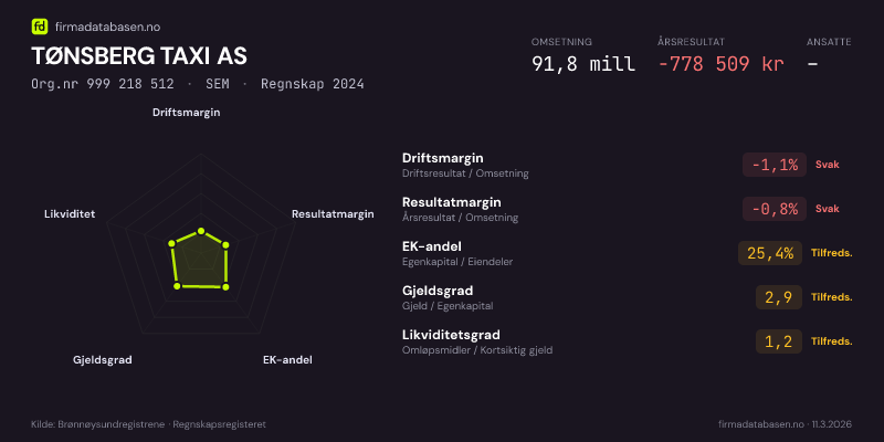 TØNSBERG TAXI AS,SEM — jo større areal, jo sterkere økonomi.Org.nr 999 218 512 · Regnskap2024