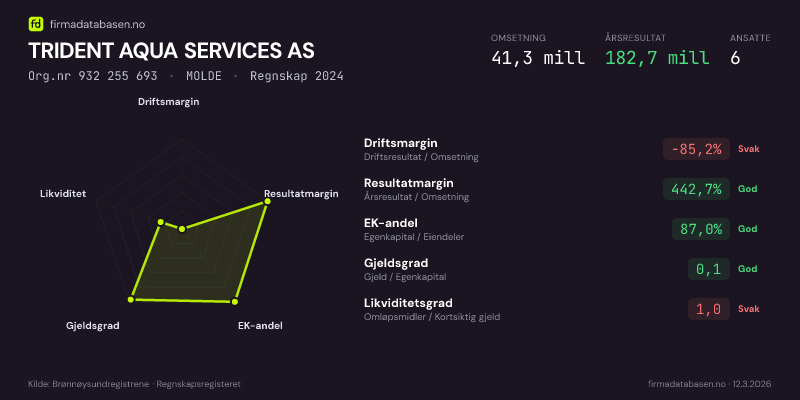 TRIDENT AQUA SERVICES AS,MOLDE — jo større areal, jo sterkere økonomi.Org.nr 932 255 693 · Regnskap2024