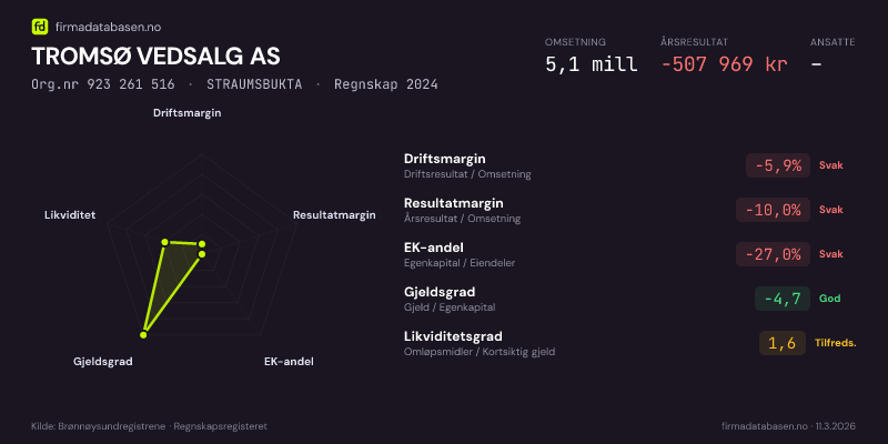 TROMSØ VEDSALG AS,STRAUMSBUKTA — jo større areal, jo sterkere økonomi.Org.nr 923 261 516 · Regnskap2024