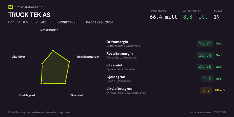 TRUCK TEK AS,BRØNNØYSUND — jo større areal, jo sterkere økonomi.Org.nr 876 009 382 · Regnskap2024