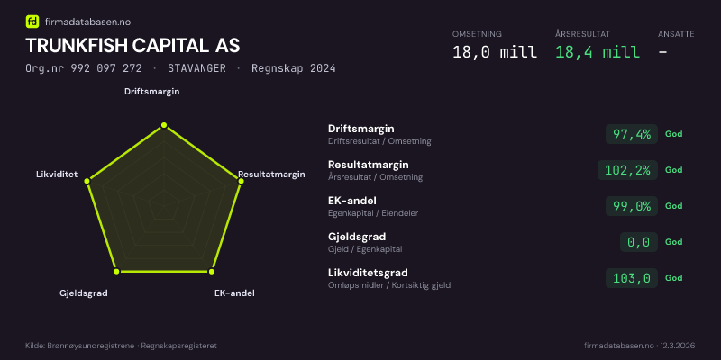 TRUNKFISH CAPITAL AS,STAVANGER — jo større areal, jo sterkere økonomi.Org.nr 992 097 272 · Regnskap2024