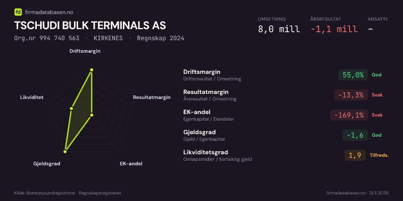 TSCHUDI BULK TERMINALS AS,KIRKENES — jo større areal, jo sterkere økonomi.Org.nr 994 740 563 · Regnskap2024