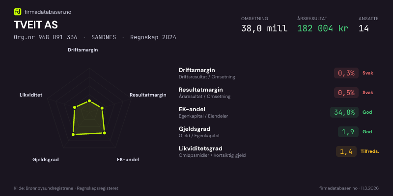 TVEIT AS,SANDNES — jo større areal, jo sterkere økonomi.Org.nr 968 091 336 · Regnskap2024