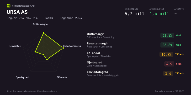 URSA AS,HAMAR — jo større areal, jo sterkere økonomi.Org.nr 923 603 514 · Regnskap2024