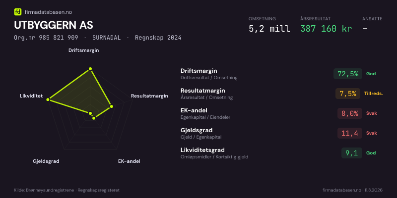 UTBYGGERN AS,SURNADAL — jo større areal, jo sterkere økonomi.Org.nr 985 821 909 · Regnskap2024