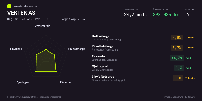 VEKTEK AS,ORRE — jo større areal, jo sterkere økonomi.Org.nr 993 417 122 · Regnskap2024