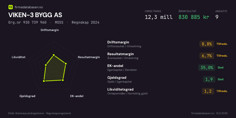 VIKEN-3 BYGG AS,MOSS — jo større areal, jo sterkere økonomi.Org.nr 930 739 960 · Regnskap2024