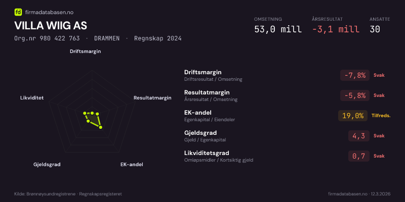 VILLA WIIG AS,DRAMMEN — jo større areal, jo sterkere økonomi.Org.nr 980 422 763 · Regnskap2024