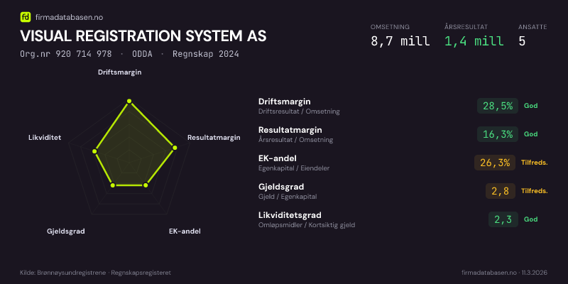 VISUAL REGISTRATION SYSTEM AS,ODDA — jo større areal, jo sterkere økonomi.Org.nr 920 714 978 · Regnskap2024