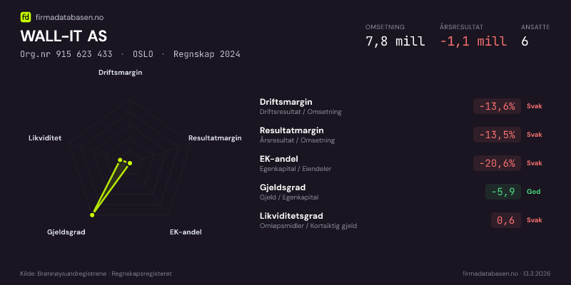 WALL-IT AS,OSLO — jo større areal, jo sterkere økonomi.Org.nr 915 623 433 · Regnskap2024